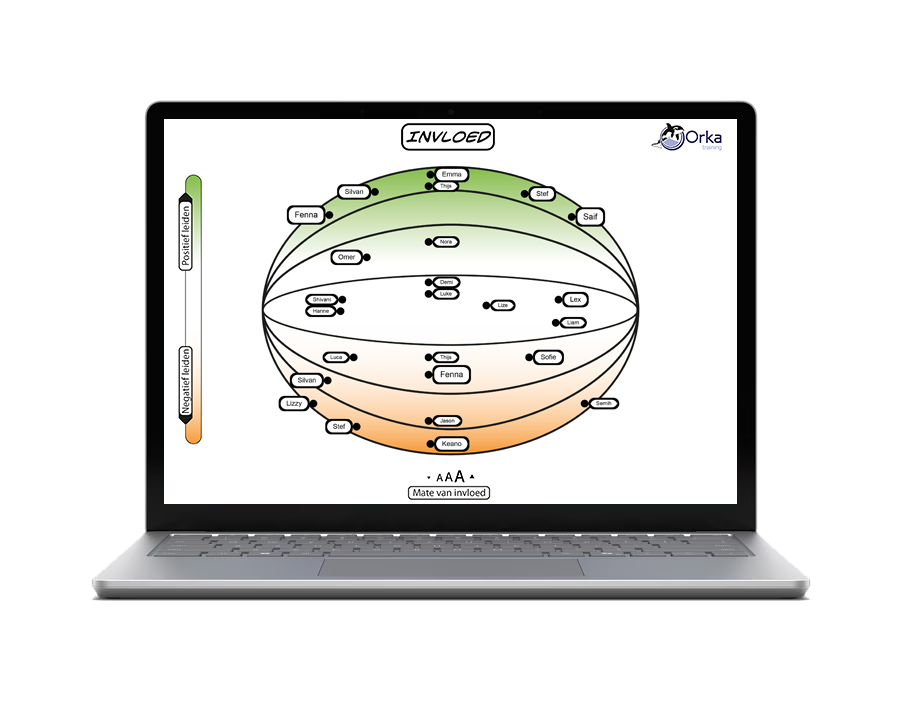 Het invloed sociogram geeft inzicht in hoe en in welke mate leerlingen invloed uitoefenen in de klas. Je ziet in één oogopslag welke leerlingen op positieve en/ of negatieve wijze invloed uitoefenen.